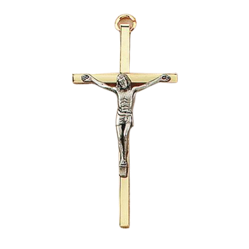 CRUCIFIX - 4" GOLD PLATED BRASS - PEWTER CORPUS