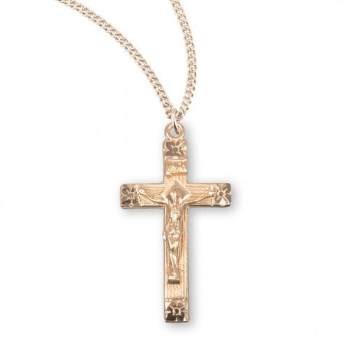 CRUCIFIX - 16K GOLD OVER STERLING FLOWER-TIPPED - 18" CHAIN
