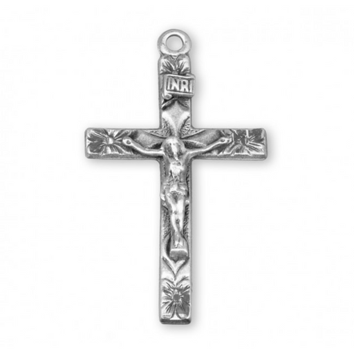 CRUCIFIX - SS FLOWERED TIPS - 18" CHAIN