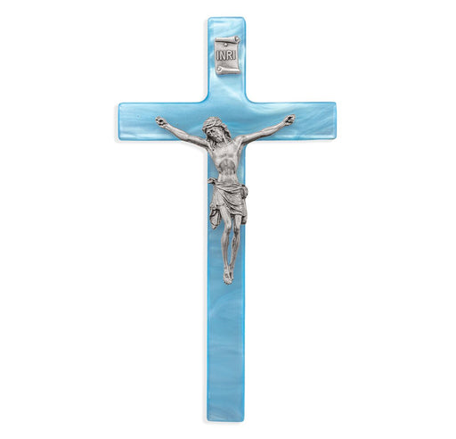 Crucifix 7" Pearlized Blue Cross with Fine Pewter Corpus