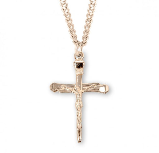 Nail designed crucifix pendant. 16kt Gold over solid sterling silver. Medal is die struck. Hand polished and engraved by New England Silversmiths. ...