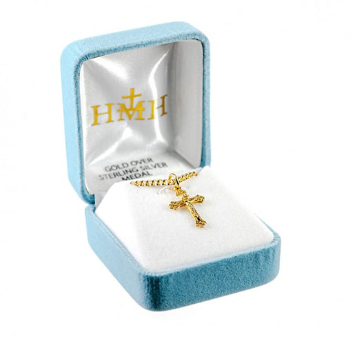 View full detailsCRUCIFIX 0.8" SWRIL ENDS 16KT GOLD OVER STERLING ON 18" CHAIN