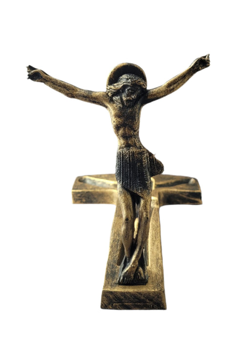 Crucifix in 10" lightly hand-painted cold cast bronze