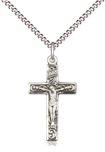 Crucifix Sterling Silver Inlayed Cross Design on 24" Chain