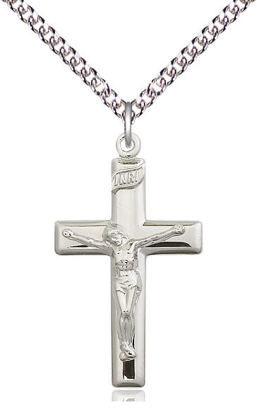 · Crucifix Medal.· Medal Measures 1 1/8-inch tall by 5/8-inch wide.· Chain is 24 Inches in length Sterling Silver Heavy Curb Chain with Lobster ...