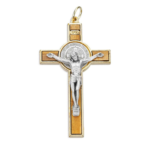 St Benedict Crucifix Size: 3" Material: Olive Wood Inlay