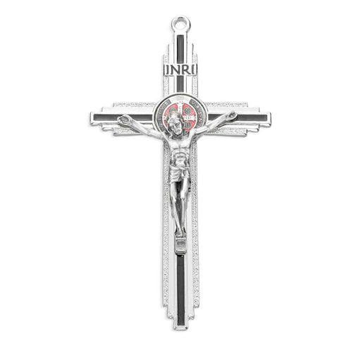 Silver Tone and Textured Silver St. Benedict Step Crucifix with Black Inlay. Size: 4 3/4"