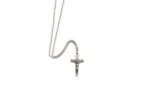 CRUCIFIX MEDAL - ST BENEDICT - .75" SILVERTONE