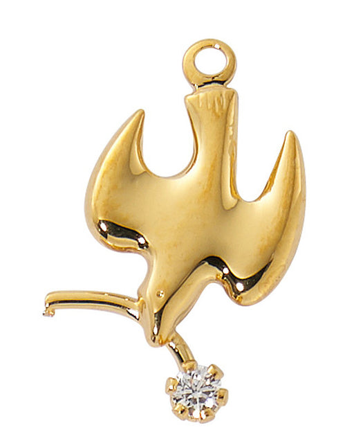 View full detailsDOVE WITH BRANCH AND CZ GOLD OVER STERLING SILVER ON 18" CHAIN