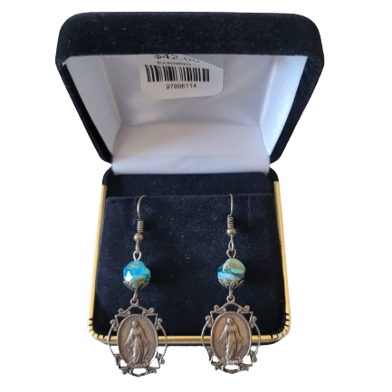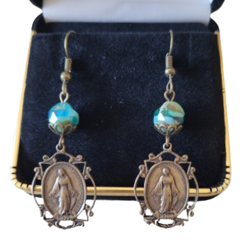 These bronze Miraculous Medal earrings are unique and beautiful. Made of Bronze with hypoallergenic bronze plated brass wire fishhooks Features ...