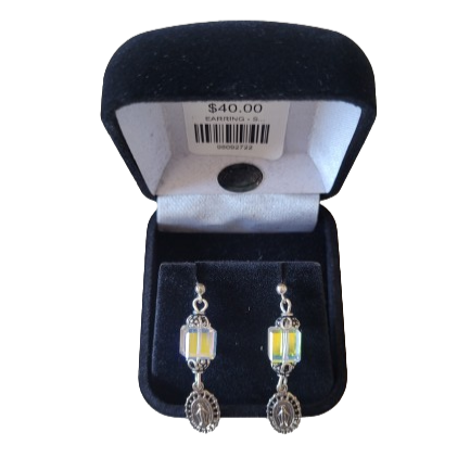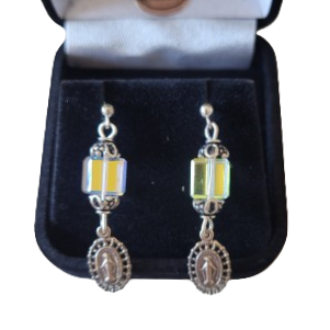 Swarovski Crystal Cube with Miraculous Medal Earrings.