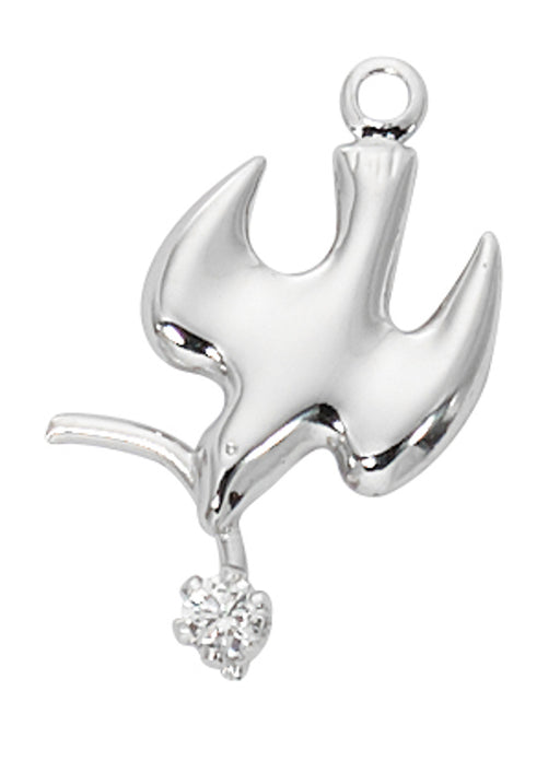 DOVE WITH BRANCH AND CZ STERLING SILVER ON 16-18" CHAIN