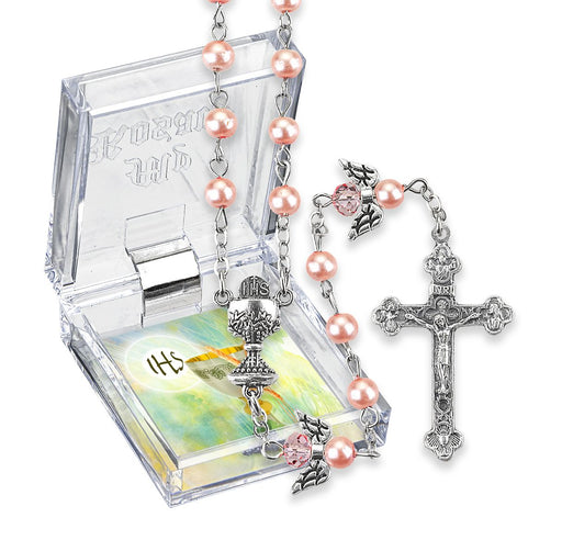 View full detailsFirst Communion Rosary Pink with Angel Our Fathers Comes in Gift Box