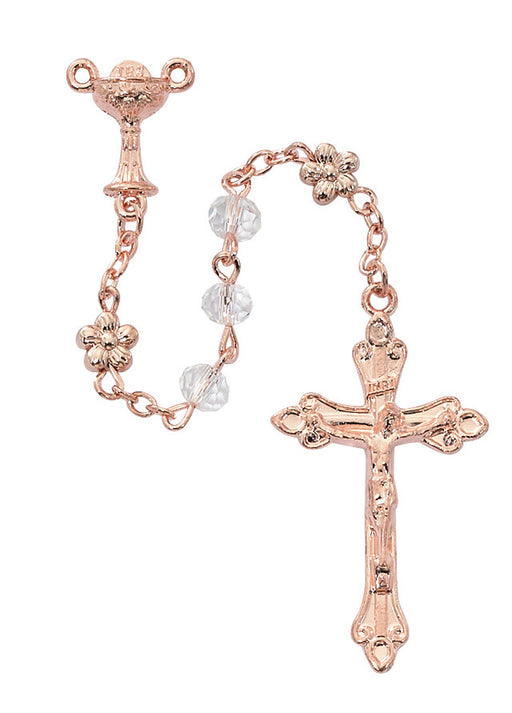 View full detailsFIRST COMMUNION ROSARY - ROSE GOLD FLOWER BEADS AND CHALICE CENTER