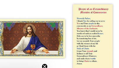 This Christ Eucharist holy card features powerful imagery and the Extraordinary Minister of Communion prayer.