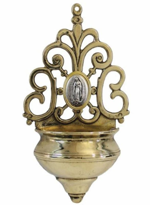 Holy Water Font 7.75" Brass with Miraculous Medal