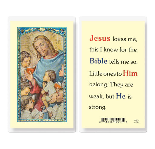 Jesus Loves Me Clear, laminated Italian holy cards with Gold Accents. Features World Famous Fratelli-Bonella Artwork. 2.5'' x 4.5''. Made in Italy.