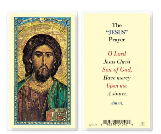 Jesus laminated Holy Card. Artwork by Fratelli Bonella. The "Jesus" prayer on the back. Card size: 2.5" x 4.5" (64mm x 114mm) 2-1/2" x 4-1/2". Ma...