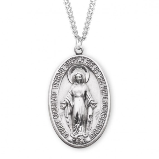 Miraculous Medal Plain Style Oval Sterling Silver on 27" Chain