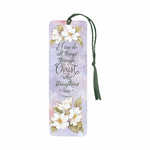 View full detailsBookmark has "I Can Do All Things Through Christ" and a green tassel.