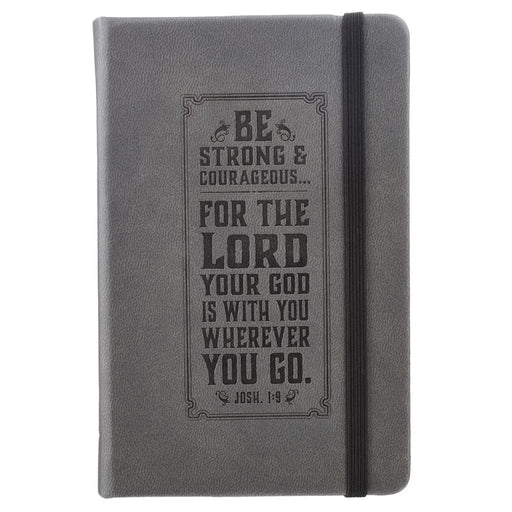 Never be without a notebook again when you keep the Be Strong Gray Faux Leather Hardcover Notebook with Elastic Band Closure tucked in a handbag or...