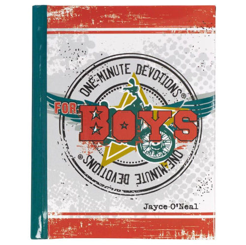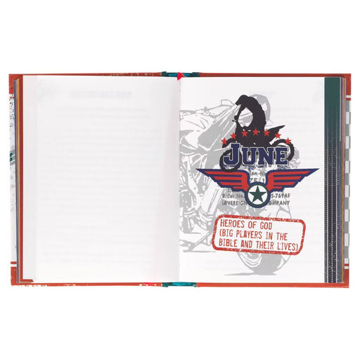 The devotional features a fun racing bike design in bright red and blue hues. The covers are padded, the front cover features a teal racing bike de...