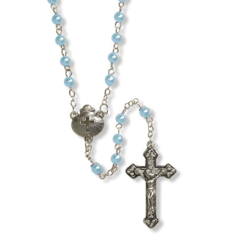 View full detailsROSARY - 5MM BLUE IMITATION PEARL - SHELL WITH CROSS CENTER
