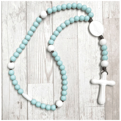 This beautiful silicone rosary is sure to bring joy to your home.  This blue, red, and white teething toy is not only soothing for your little one ...