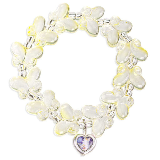 View full details10mm Lemon Yellow Glass Butterfly Bead Stretch Bracelet with Spacers and a Guardian Angel Heart Shaped Charm. Charm Size: 3/4" (19mm) Bracelet size...