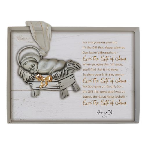 View full detailsORNAMENT - GIFT OF JESUS WITH WHITE RIBBON - 2.75" METAL