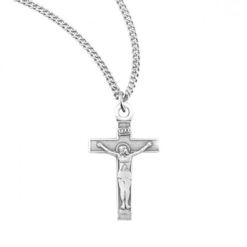 A lovely and traditional crucifix is made from the finest grade solid sterling silver stock, Die-striking enables the intricate details of the coin...