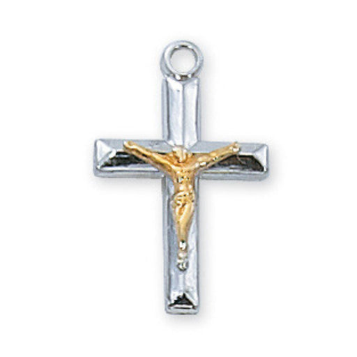 GOLD OVER STERLING SILVER CRUCIFIX WITH 16-18" GOLD OVER BRASS CHAIN. INCLUDES DELUXE GIFT BOX.DIMENSION: 13/16" LONG