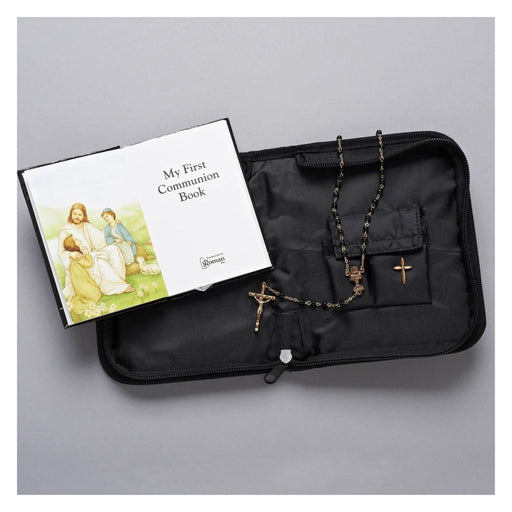View full detailsDimensions: 6"H 7.25"W 2"D BOX- PURSE 5"H Included: ROSARY, ROSARY CASE, PURSE, BOOK, PIN AND SCAPULAR
