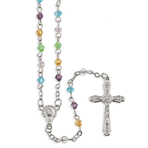 View full detailsUnique and beautifully-made. Rosary has a metal silver 'Mary' center, a beautiful, detailed metal crucifix, multi-colored crystal beads, and clear ...
