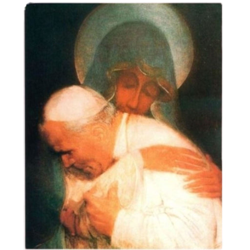 This beautiful print of the Blessed Virgin embracing and maybe even comforting the most Marian Pope is a powerful reminder of the love of the Bless...