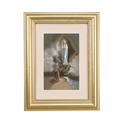 OUR LADY OF LOURDES 5.25" X 6.75" GOLD LEAF FRAME WITH CREAM MATTE