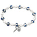 Bracelet with Miraculous medal blue enamel heart & pearl glass beads. Has Miraculous medal and Crucifix charms.