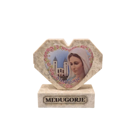 Stone Standing Heart from Medjugorje with Image of Our Lady 2.5"