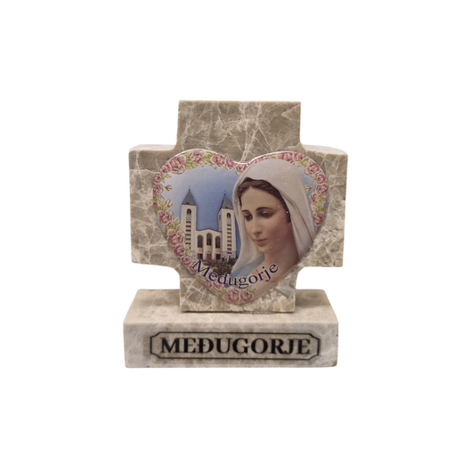 Stone Standing Cross from Medjugorje with Image of Our Lady 2.25"