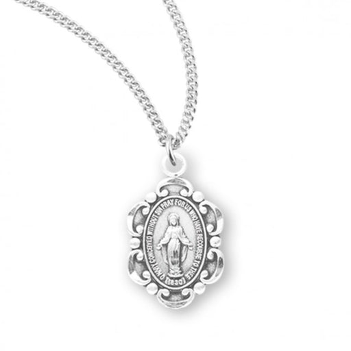 Miraculous Medal Fancy Edge Sterling Silver on 18" Chain