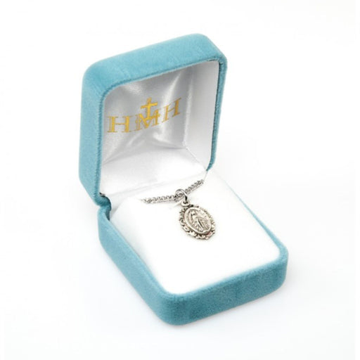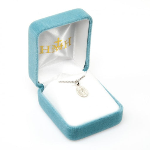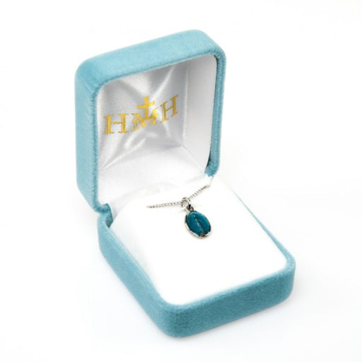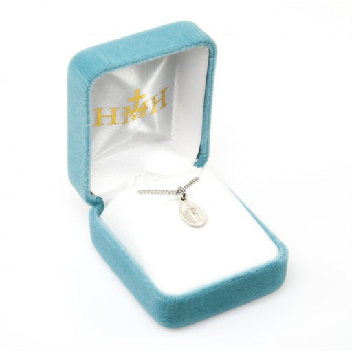 Child Miraculous Medal SS 0.5" Blue Enamel on 13" Chain