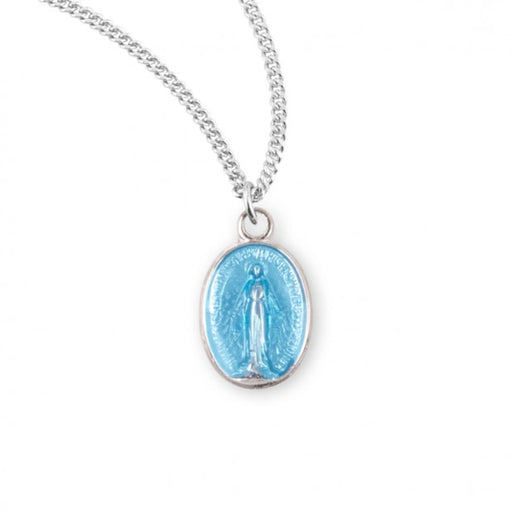 MIRACULOUS MEDAL -.935" SS -LIGHT BLUE ENAMEL - 18" CHAIN