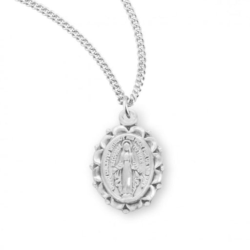 Miraculous Medal 0.7" Scalloped Edge Sterling Silver on 18' Chain