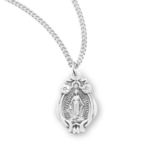 Miraculous Medal Flower Frame Sterling Silver on 18" Chain