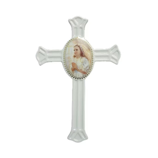 This Crucifix features a pink epoxy inlay. Material: Wood. Size: 7" High. Made in the USA.