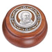 1 3/4" Dark Wood Keepsake Box with St. Pio Image in Oxidized Metal and Brown Epoxy