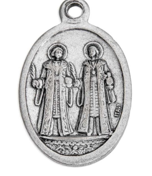 Oval Silver Oxidized Saint Cosmos and Saint Damian Medal. Size: 1" - 26mm Made in Italy.