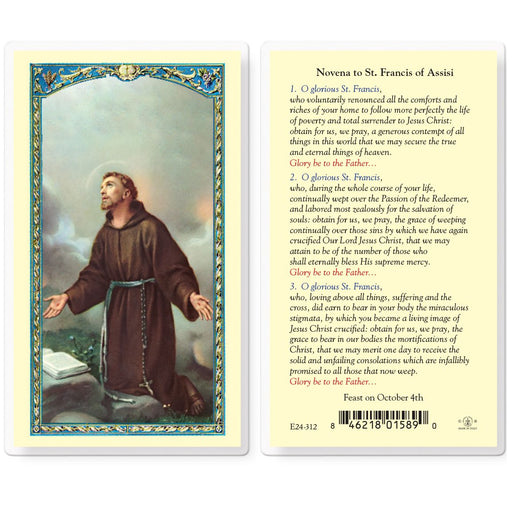 View full detailsSaint Francis of Assisi laminated Holy Card. Artwork by Fratelli Bonella. Novena to Saint Francis of Assisi on the back. Card size: 2.5" x 4.5" (6...