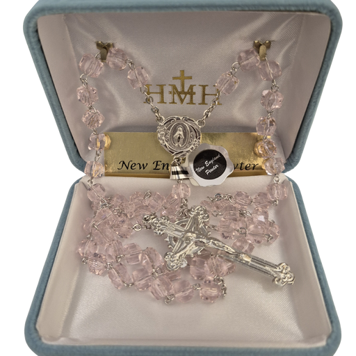Rosary 8mm Czech Light Rose Crystal Cube Beads