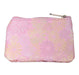 Pink Tapestry Fabric Rosary Pouch with Gold Flowers and Zipper Opening . 3" x 4".
